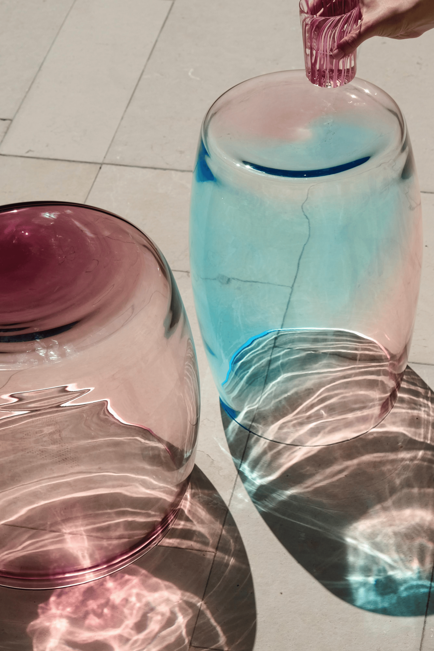 Every piece embraces variation, the natural gradients, subtle asymmetries, and organic movement that emerge during the glassblowing process. With their clean silhouettes, saturated colours, and luminous depth, Tavolini tables function as functional artworks: objects that catch light, shift atmosphere, and bring a distinctive presence into space.