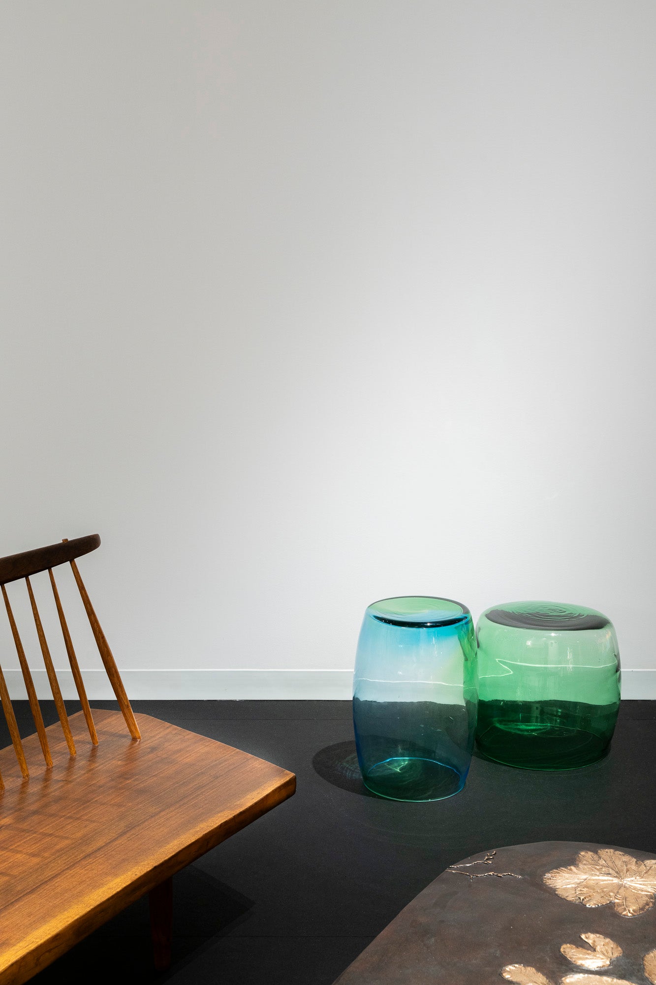 Hand-blown in Murano, the Tavolino Laguna 50 is defined by its fluid interplay of aquamarine and green tones, a chromatic gradient shaped in a single molten gesture. As the glass settles, soft internal movement patterns emerge - traces of the furnace process that make each edition singular.