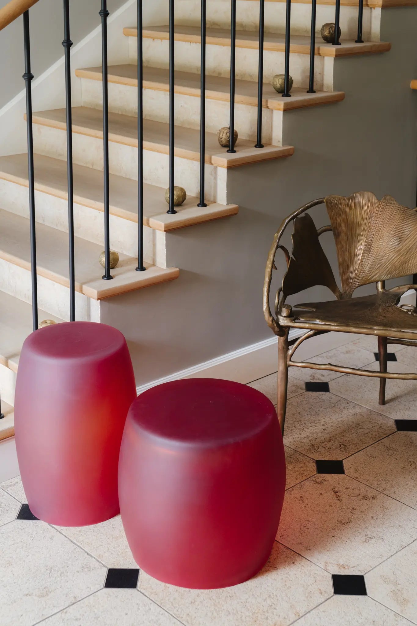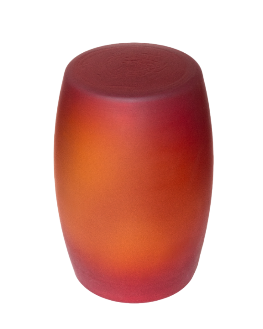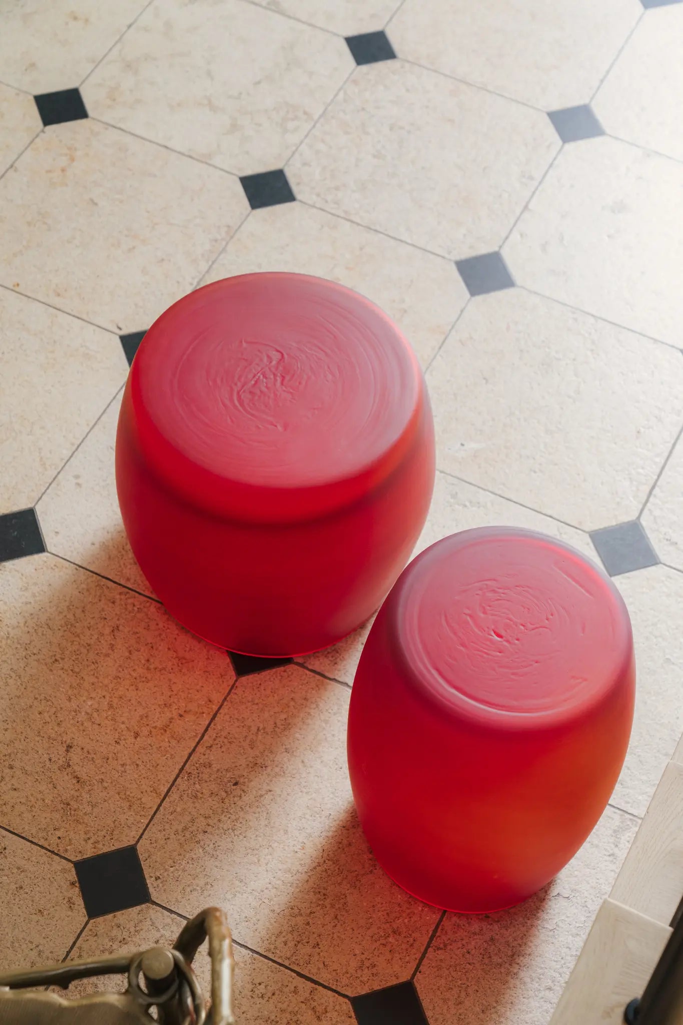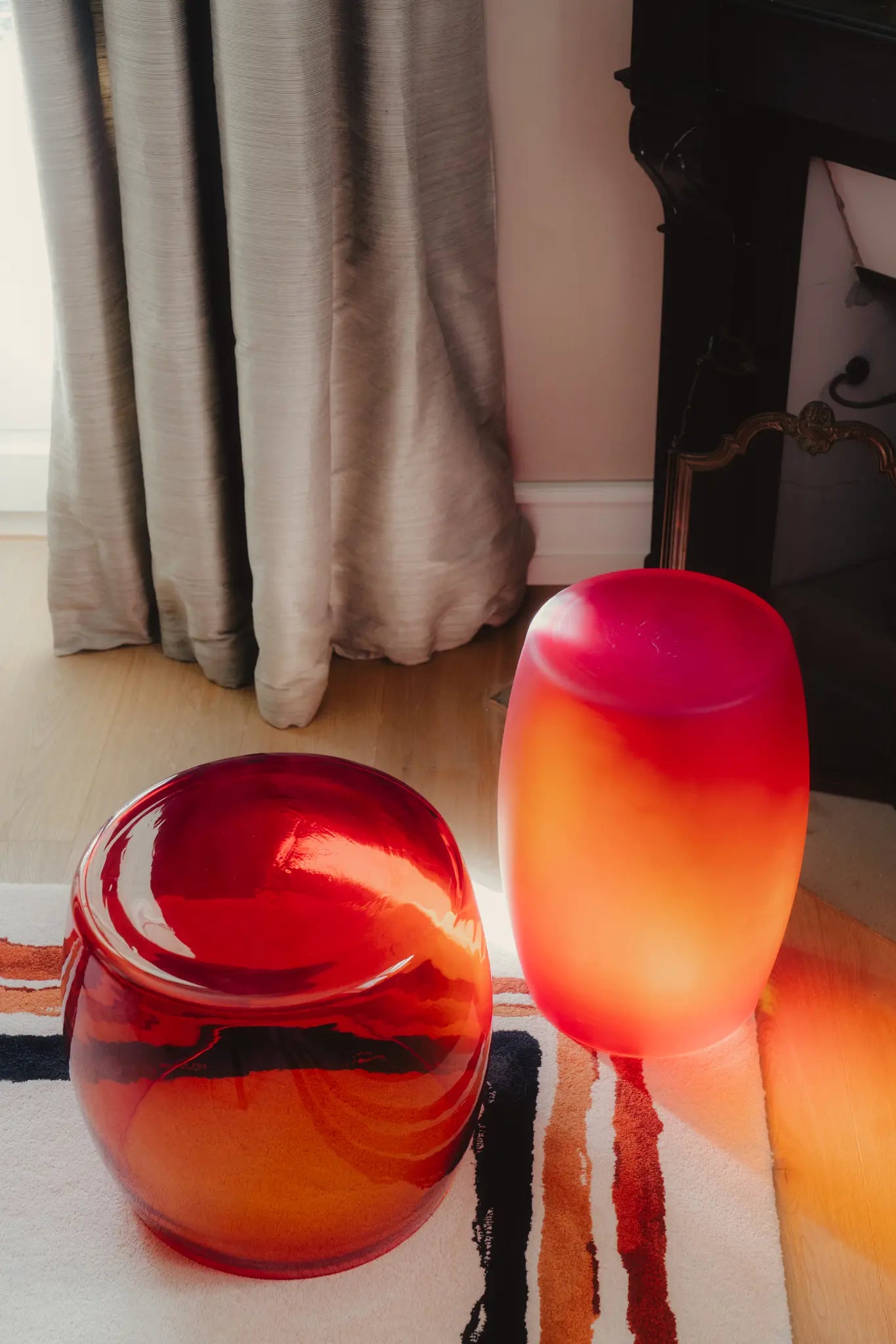Hand-blown on the island of Murano, the Tavolino Mars Matte 50 reveals a warm red colour and an elongated, sculptural form. Shaped in a single fluid gesture, the piece captures subtle tonal shifts and internal movement traces from the molten glass as it settled into shape.