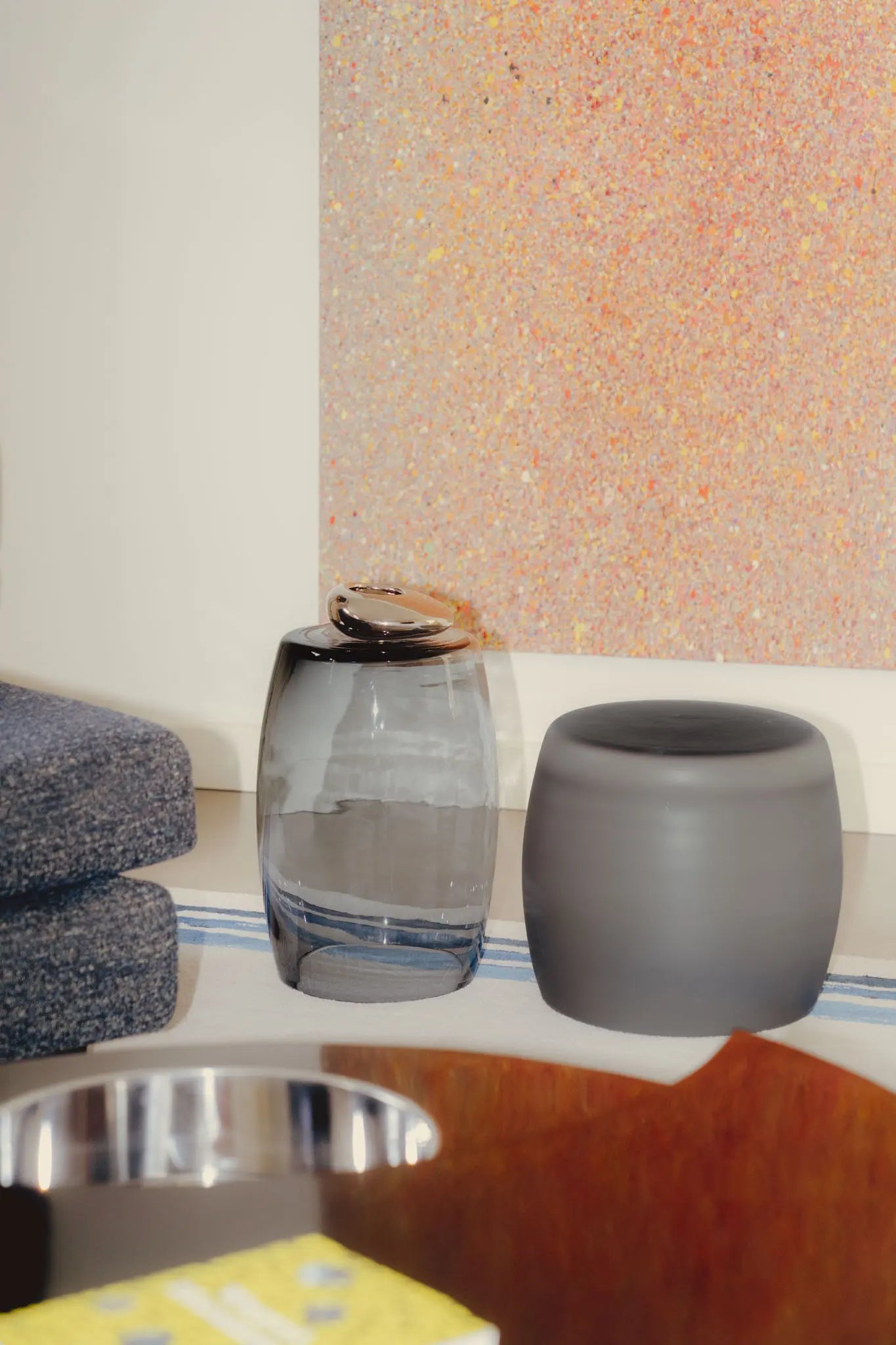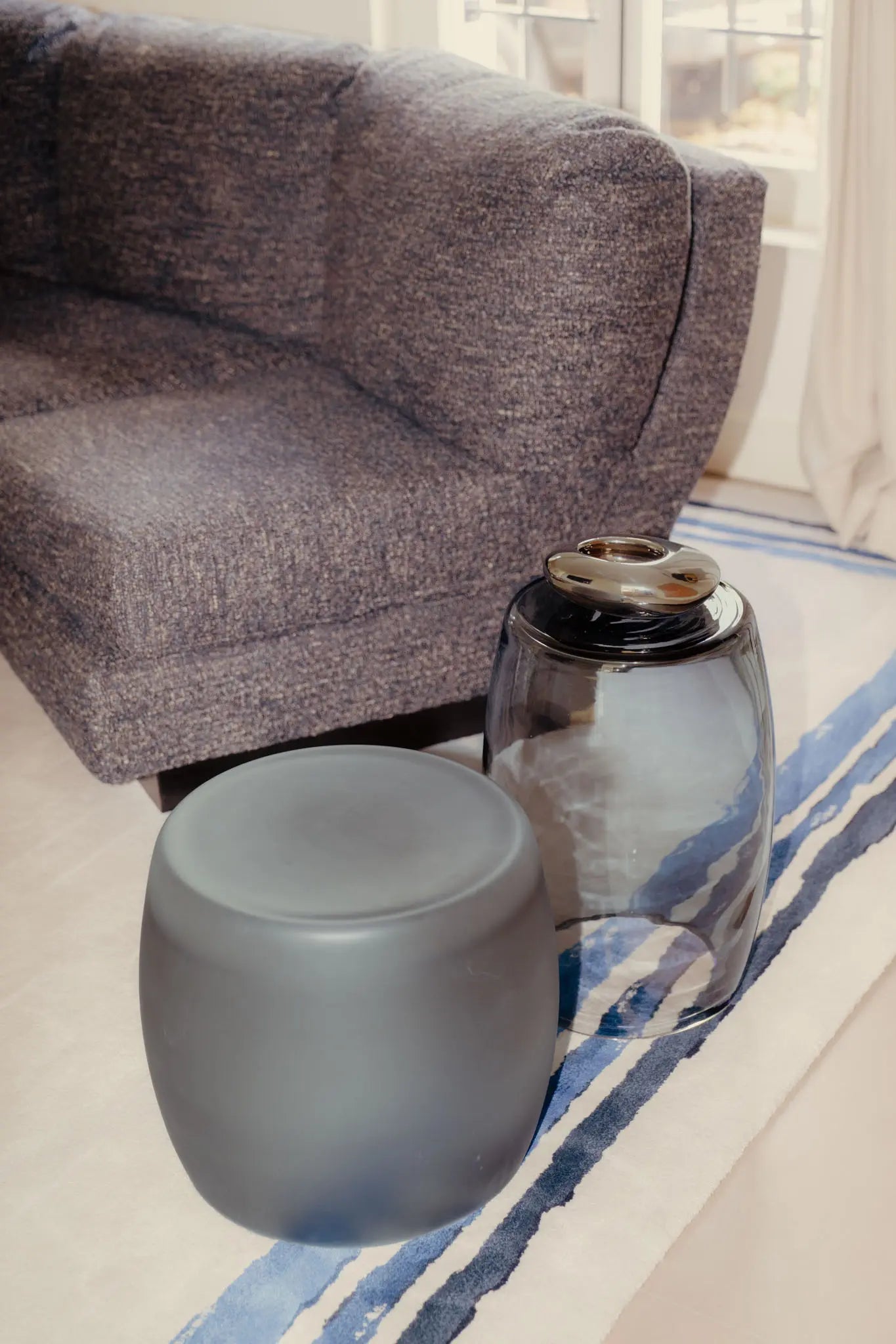 Hand-blown on the island of Murano, the Tavolino Mercury Matte 40 is characterised by its dark grey tone and softly rounded volume. Formed in a single fluid motion, the piece preserves delicate shifts in colour and the internal movement traces created at the very moment the molten glass settled into form.